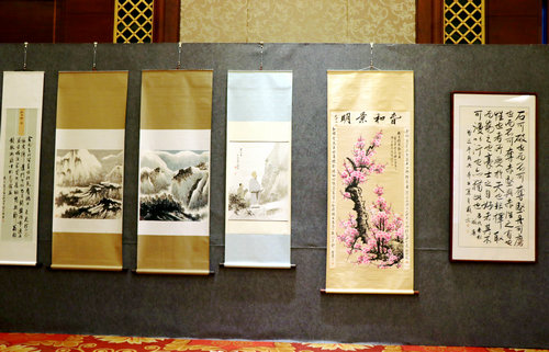 当原吉安市市委常委郭庆亮宣布书画展开幕后,各位领导嘉宾在组委会工作人员的带领下,王云鹏先生的陪同下移步展厅开始参观展览。